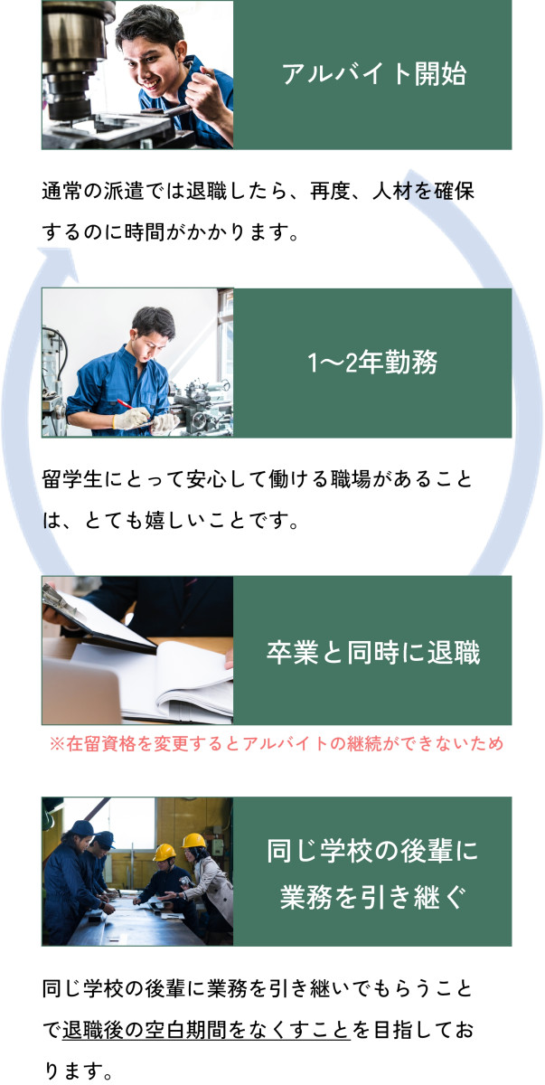 すべて弊社にお任せ下さい。在留資格の変更・更新が必要な場合は弊社で対応させていただきます。